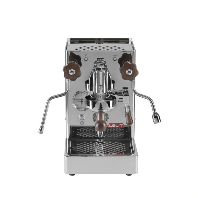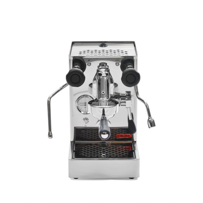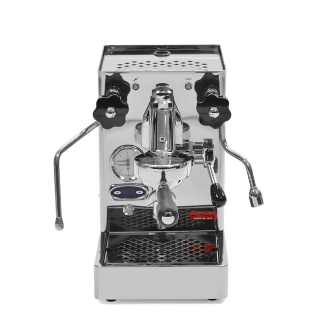 Calentador de tazas. Bandeja de agua pulida en acero inoxidable. Manómetro doble para presión café / vapor. Varillas de agua / vapor anti-quemaduras multidireccionales. Pomos estilo antiguo pulido en resina fenólica con tapa cromada anti-quemaduras. Controlador de caldera PID para café. Cuerpo del aparato de acero inoxidable pulido espejo.